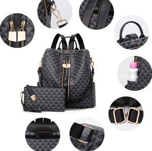 Backpacks for Women Fashion PU Leather Bag Multipurpose Design Convertible Satchel Bag Travel Backpack Handbag and Purse 2Pcs