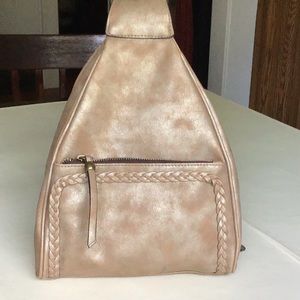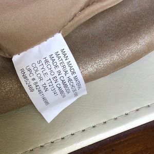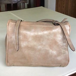No name tags but had a black one just like it Liz Claiborne,zipper pouch in front zipper pouch in back, side zipper to get in bag, zipper that divides purse, or can use as shoulder bag, in very good condition, inside bag one side zipper pouch other side pouch