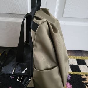 Olive Green Nylon Backpack with plenty of room inside. Easy to clean.