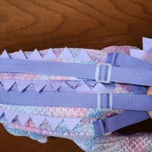 Alligator purple backpack with sequence on the front. The back pouch is big and can fit a lot. Never used, from a smoke and pet free home.