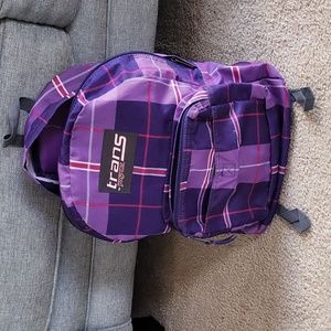Trans by Jansport backpack. 1 main section with front pocket. Purple in color. Good condition.