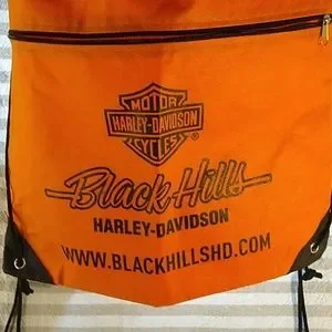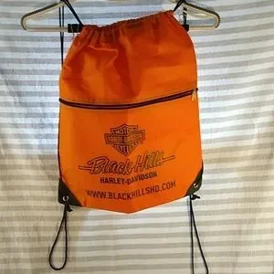 Harley Davidson orange and black feather light backpack/bag. One front zipper pocket and one main section.