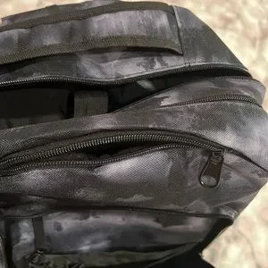 Large backpack with so many pockets to hold all your belongings in an organized manner and with two padded straps for comfort. It has two lower zippered pockets in front and one even has a key ring and various slotted pockets. There is an upper pocket with a cloth lining. Then, there are two larger zippered pockets with the more front one having a clear pocket, a folded cover pocket, and a zippered pocket for office supplies. The next large zippered pocket has two padded pockets for your technology and other pockets on the other side for all your extra items. This backpack has enough room for everything!