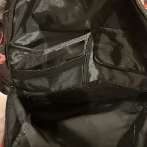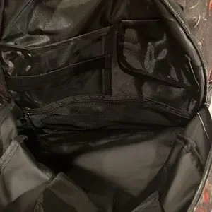 Large backpack with so many pockets to hold all your belongings in an organized manner and with two padded straps for comfort. It has two lower zippered pockets in front and one even has a key ring and various slotted pockets. There is an upper pocket with a cloth lining. Then, there are two larger zippered pockets with the more front one having a clear pocket, a folded cover pocket, and a zippered pocket for office supplies. The next large zippered pocket has two padded pockets for your technology and other pockets on the other side for all your extra items. This backpack has enough room for everything!