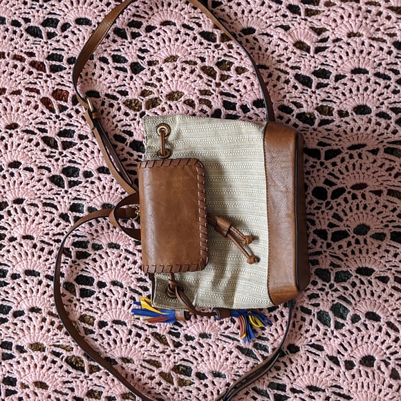Brand New Vegan Leather Backpack With Snap And Draw Closure. Detachable Straps And Removable Tassels. Zipper Pocket And Two Open Pockets Inside. Never Been Used