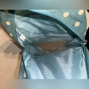 Blue and white book bag. *Makeup got in the bottom so needs a good cleaning! (as shown in pic) Previously loved.