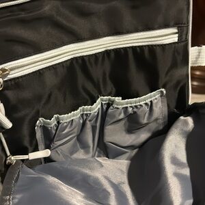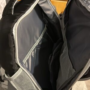 Multi use backpack with bottom zipper to store shoes. Multiple compartments