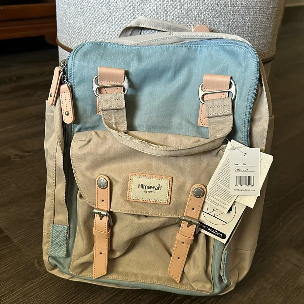 Laptop Backpack Material: High quality waterproof scratch-resistant Nylon (but not completely waterproof) & Leather Decoration & Smooth Metal Zipper.