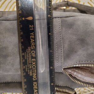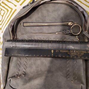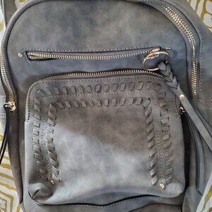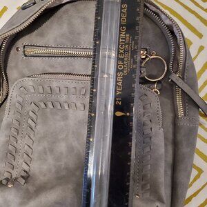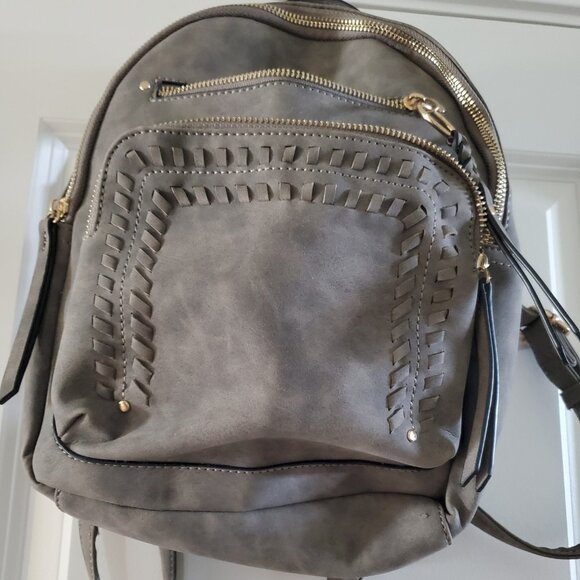 Suede Like Back pack with beautiful gold hardware and braded accents. No brand name but real quality construction - very nice and super clean.