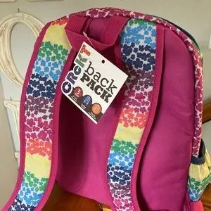 Girls Backpack. Side pockets. Patted straps. Color pink/yellow. Brand new.