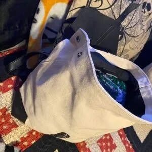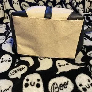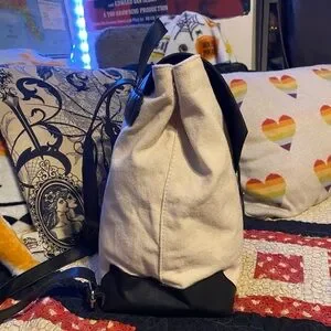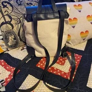 Black faux leather cream canvas backpack Deux Lux
