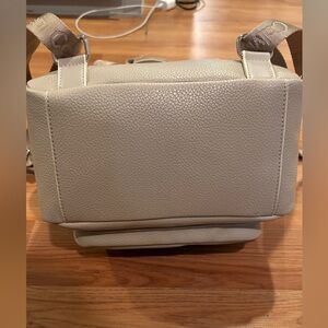 Exterior- 2 zipper compartments/1 open compartment