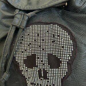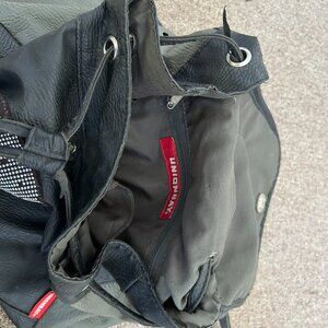 Union Bay back pack in good condition. Pleather. no rips or tears. Measures 14" x 14". Black with grey side panels.