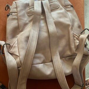 Cute, pink backpack featuring a front zipper and side pockets. Perfect for everyday use. Used a couple of times. In good condition.