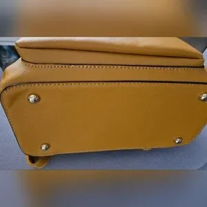 Mid size backpack. Cute, faux leather in mustard colored used in great condition! 13" height, 4.5" depth, 10.5" width. Working pockets and zippers.