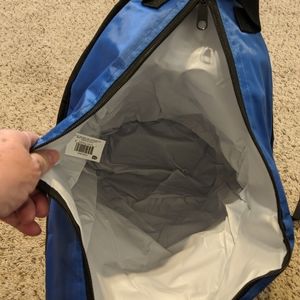 Blue Backpack Cooler with front pocket. New wo tags. Never used. Outside dimensions are 17" high, 15" wide and 10" deep. Inside cooler is 7" high, otherwise same as the outside.