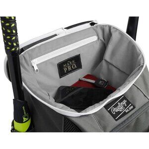 Backpack Features: * Main storage compartment converts to a game time shelf for easy access to gear * Customizable top valet tray and MARK OF A PRO valuables compartment * 2 removable custom team decoration locations (valet tray and beaver tail) * Fully structured and easy to clean tarpaulin bottom material * Internal cleat/turf storage compartment * 2 neoprene bat storage locations * Includes fence hook * Storage Capacity: 45 liters * Dimensions: 19.75" H x 13.2" W x 9.8" D * Weight: 2.4A lbs.
