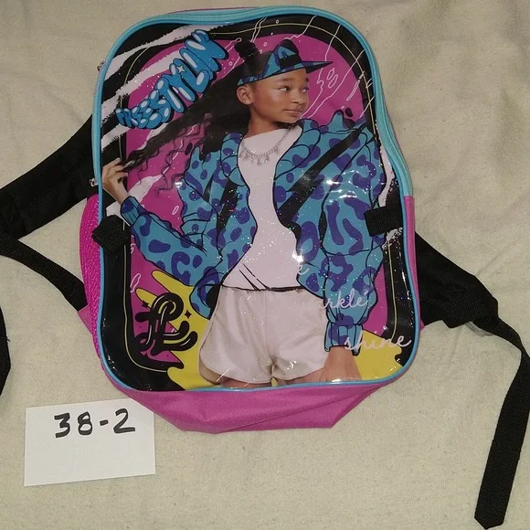 Backpack. That Girl Lay Lay. Bioworld merchandising. 16 inches by 12 inches. 4.5 inches wide. One side has mesh bottle holder. Picture on the back appears to be made of plastic. It is attached to what appears to be a canvas bag construction. New Without Tags. Never used.