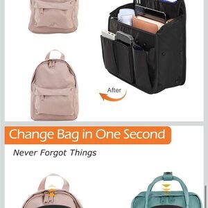 Large. Backpack/backpack purse liner/organizer. Foldable and compressible. New and sealed.