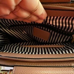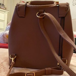 Blush purple color backpack purse. Can also be carried by handles on top. Has a front pocket, a zippered back pocket and lots of room in the main compartment. Used a couple of times. Dimensions are 10x5x10 inches.