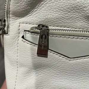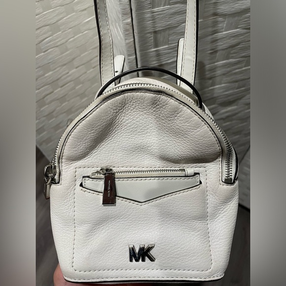 Small backpack purse with cross body strap. Michael Krs. White color