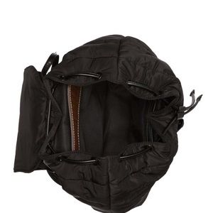 Same Edelman fabric back pack. Brand new without tags. Quilted soft exterior construction, top flap with magnetic closure, draw string on top. Two adjustable straps to adjust length. Interior has 8 card slots and two pockets. Good size for school, work, exercise or travel.