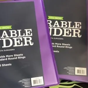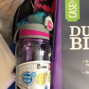 All brand new. Bundle include one regular size backpack, two purple durable binder, one bubba 24 oz bottle of water, one battery pack
