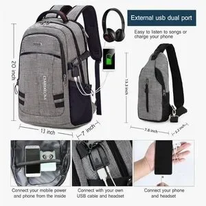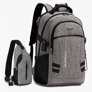 Discover the gray backpack and sling bag set, perfect for daily adventures. Durable and spacious, this set offers style and functionality.