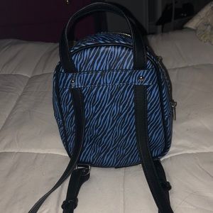 Cute small backpack with very a nice blue and black design great condition barely used great for traveling light or a gift for a loved one!