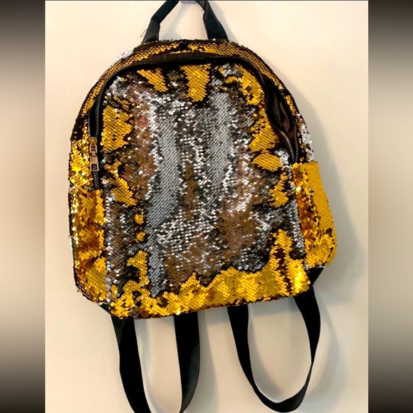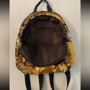 Backpack with good and sequins reversible. Like new. Never used. Multiple pockets.