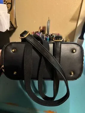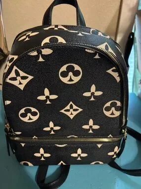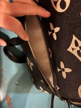 Backpack used once for a couple hours and the wallet was taken out of the plastic for the pictures. Lovely black/beige coloring. Adjustable straps.