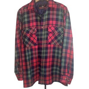 Backpacker Vintage Christmas Plaid Flannel Button Front Mens Shirt Size Medium