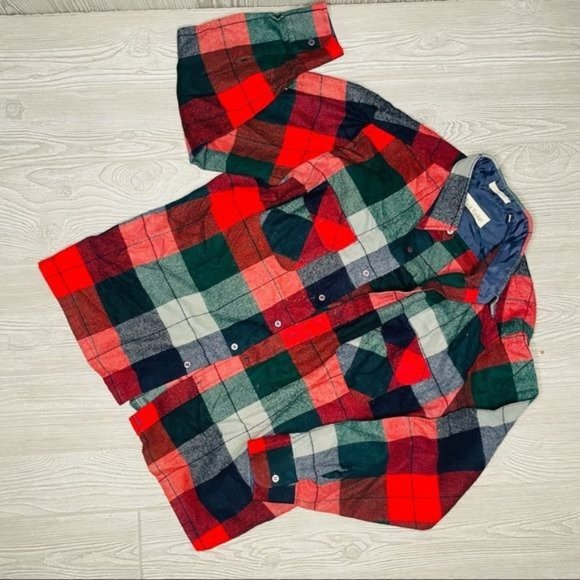 Backpacker oversized flannel button up long sleeve shirt size large .