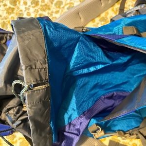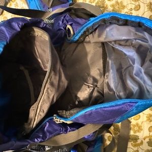 65 liter backpacking pack. Never used. Lots of zippers and compartments. Patch can be used to cover writing on the front.
