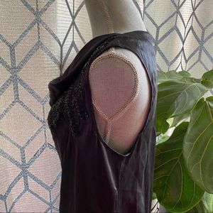 Good used condition LBD. Sequin embellished on one side. No rips, tears or runs. Just needs a good steam.24” across unstretched and 35.5” from back of collar to hem. Junior size 9. Fits adult size small and slim medium.