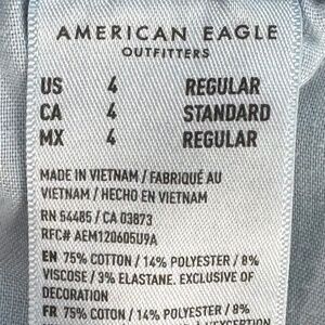 Both American Eagle pairs are crafted from soft, flexible fabrics, providing a flattering fit and all-day comfort. One pair is made from 75% cotton, 14% polyester, 8% viscose, and 3% elastane, while the other pair features a slightly thicker 85% cotton, 13% polyester, and 2% elastane blend for a structured but flexible fit. Perfect for everyday wear with a classic mid-rise cut.