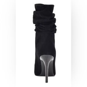 A pair you can dress up or down, these genuine suede booties have a slouchy gathered top with a pull-on design, stiletto heel and pointed toe. This style features croc-embossed and suede covered heels.