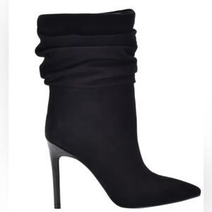 A pair you can dress up or down, these genuine suede booties have a slouchy gathered top with a pull-on design, stiletto heel and pointed toe. This style features croc-embossed and suede covered heels.