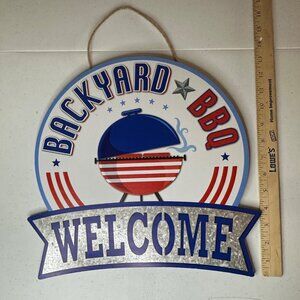 Backyard BBQ Welcome patriotic decoration Fourth of July Independence Day sign