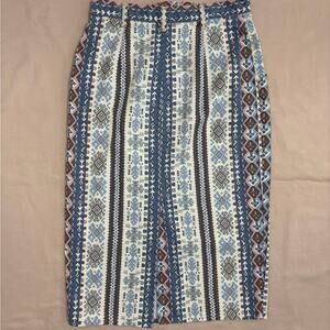 Backyard Blues Vintage Western Geometric Patterned Blue and Brown Women's Skirt