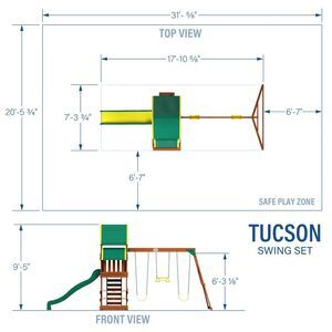 This Backyard Discovery Tucson swing set features a covered play deck, an 8' slide, two belt-swings with kid-friendly chains and an incredibly fun trapeze acrobat bar. A sand box and a picnic/activity table with a bench are also attached for kids who want to rest, eat or play games. Additional features include a step ladder/rock wall that provides easy access to the top floor. Loads of fun for girls and boys, this Backyard Discovery swing set comes pre-drilled, pre-cut, pre-stained and stamped lumber for easy two-adult assembly.