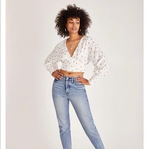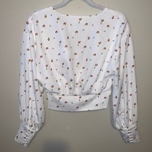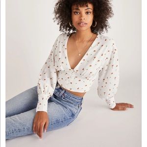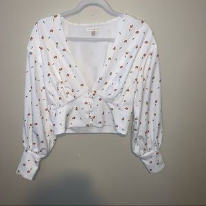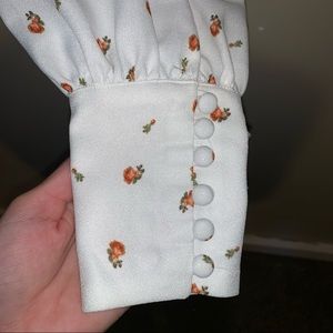NWOT. This Alex Button Front Rose Top is a blooming long sleeve, perfect with detailed floral prints on a printed crepe fabric and button cuffed links paired with denim bottoms will have you the center of attention in any room.
