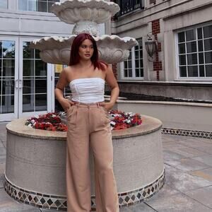 Elevate your wardrobe with these stunning Backyard Roses pleated wide-leg pants! Perfect for the office or a casual day out, these high-rise trousers offer both style and comfort.