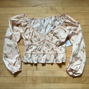 Never worn, new with tags. Can be worn off the shoulder or as wide V-neck.