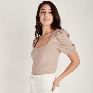 This is the Carrie top in taupe! Size M! Never worn because it was too big but it’s so cute!!