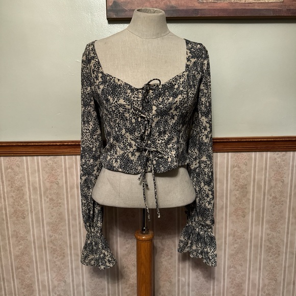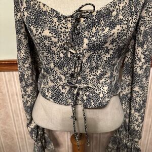 Backyard Roses leopard print top with tie front and bell sleeves. Size: XS #leopardprint #wildstyle