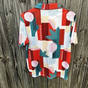 Bad Birdie Albatross Golf Polo Shirt Mens M Red Short Sleeve Abstract Floral