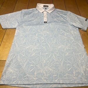 Bad Birdie Golf Polo Tropical Leaf Print Size Medium Color Light Blue