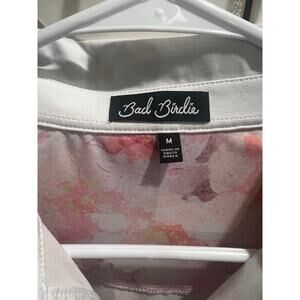 Bad Birdie Men’s Golf Polo Shirt M Pink Floral White Collar Performance Medium