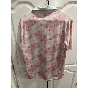 Stay stylish on the course with this Bad Birdie men’s golf polo in size Medium. Features an eye-catching pink floral pattern with a contrasting white collar and placket. Lightweight, breathable, and designed for comfort and performance. Made in South Korea. Excellent condition, perfect for golf or casual wear.